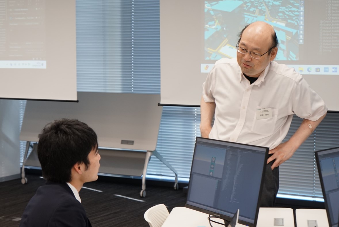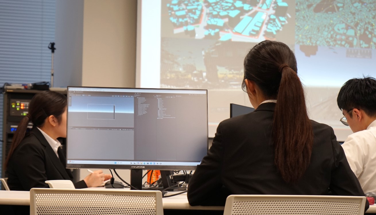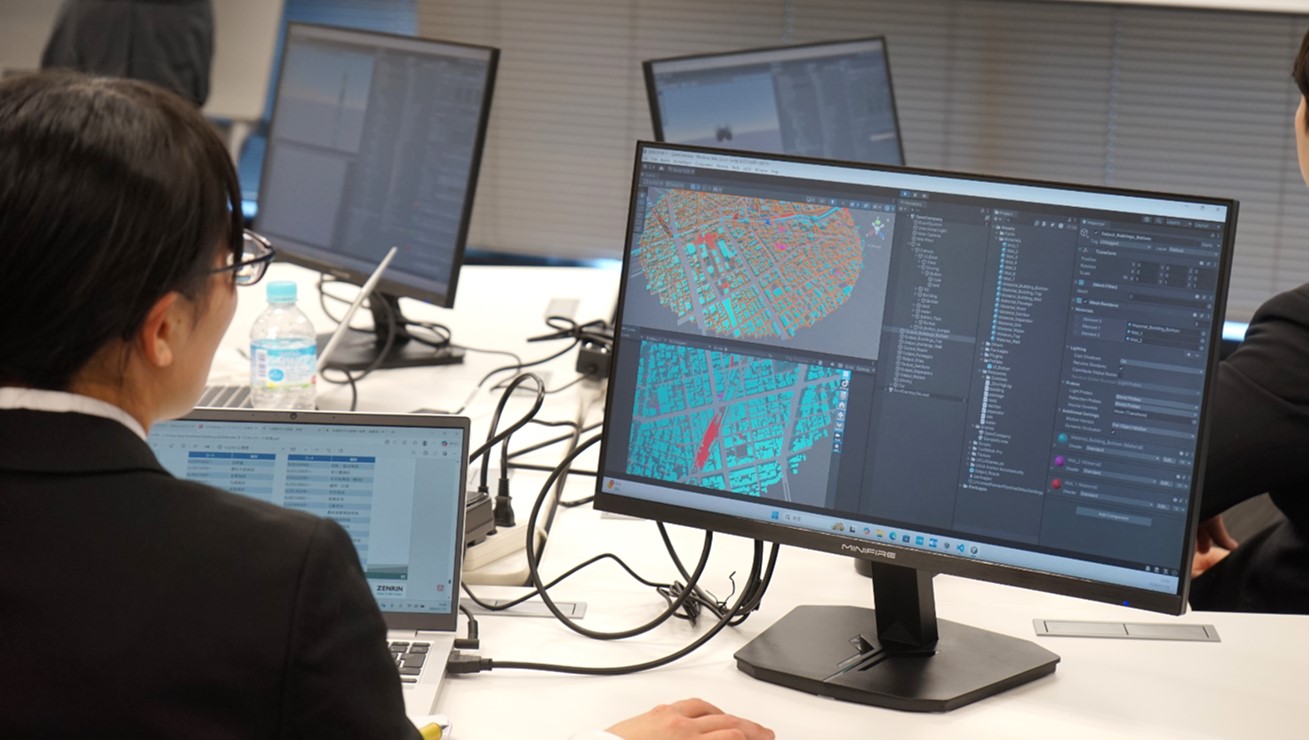 当社が所有するデータを活用したプログラム実習を行います。2026年1月開催のオープンカンパニーでは、ゲームエンジン「Unity」と当社のデータを活用し、3Dの街を表現する実習を行いました。
