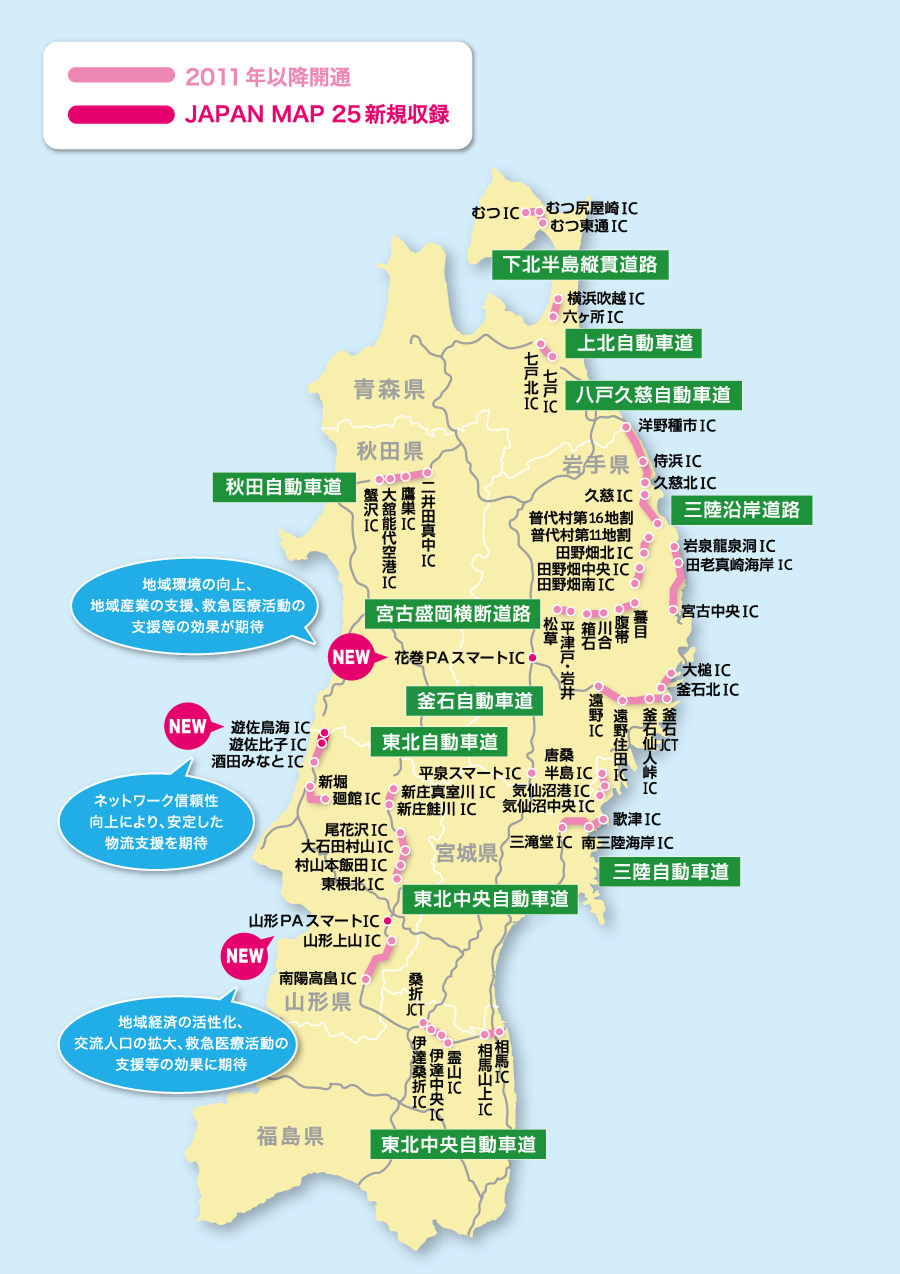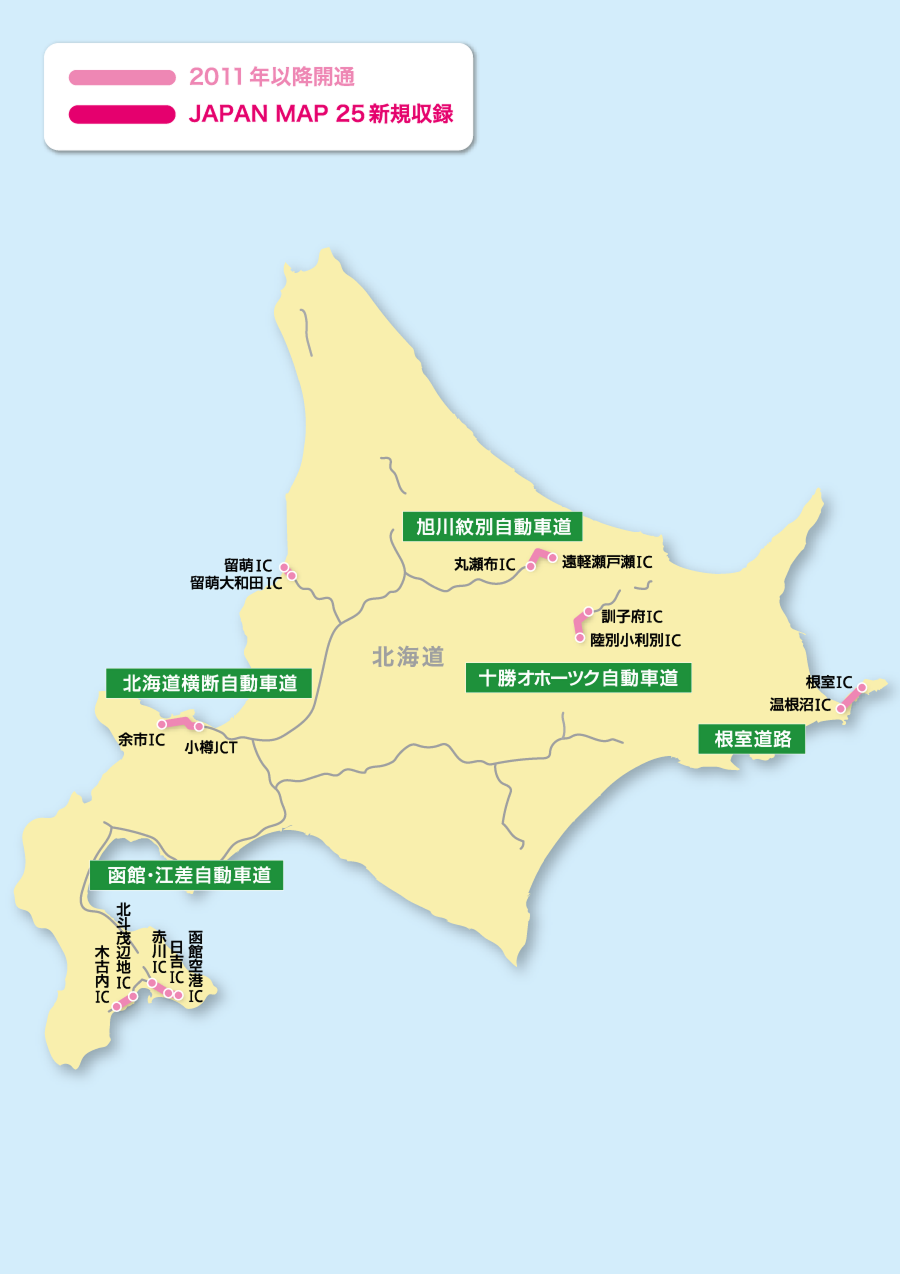 JAPAN MAP 25 に収録されている、主な高速道路の変化情報をご覧いただけます。