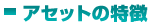 | サンプルプロジェクト の主な機能 (※アセット毎に内容は異なります) |