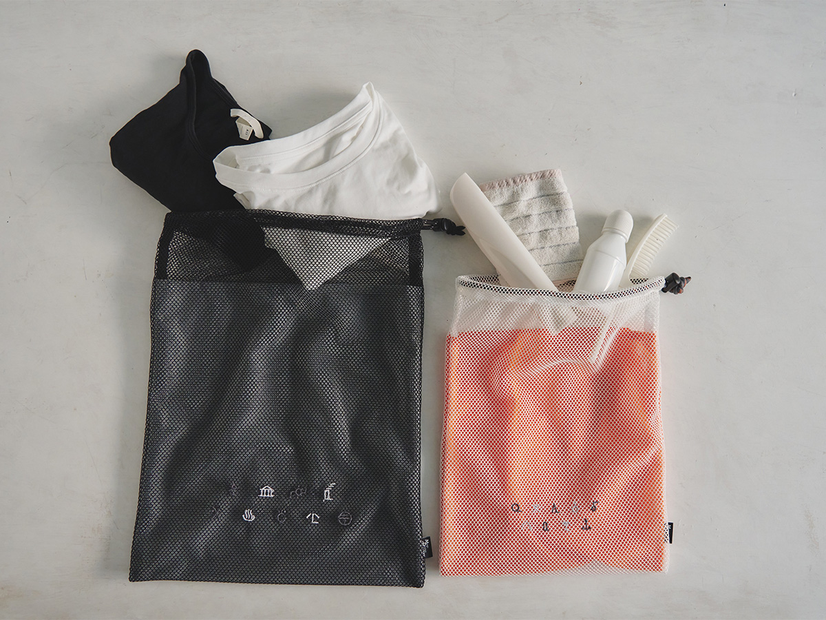 旅行中の荷物整理に便利な、大小2枚セットのメッシュ巾着です。