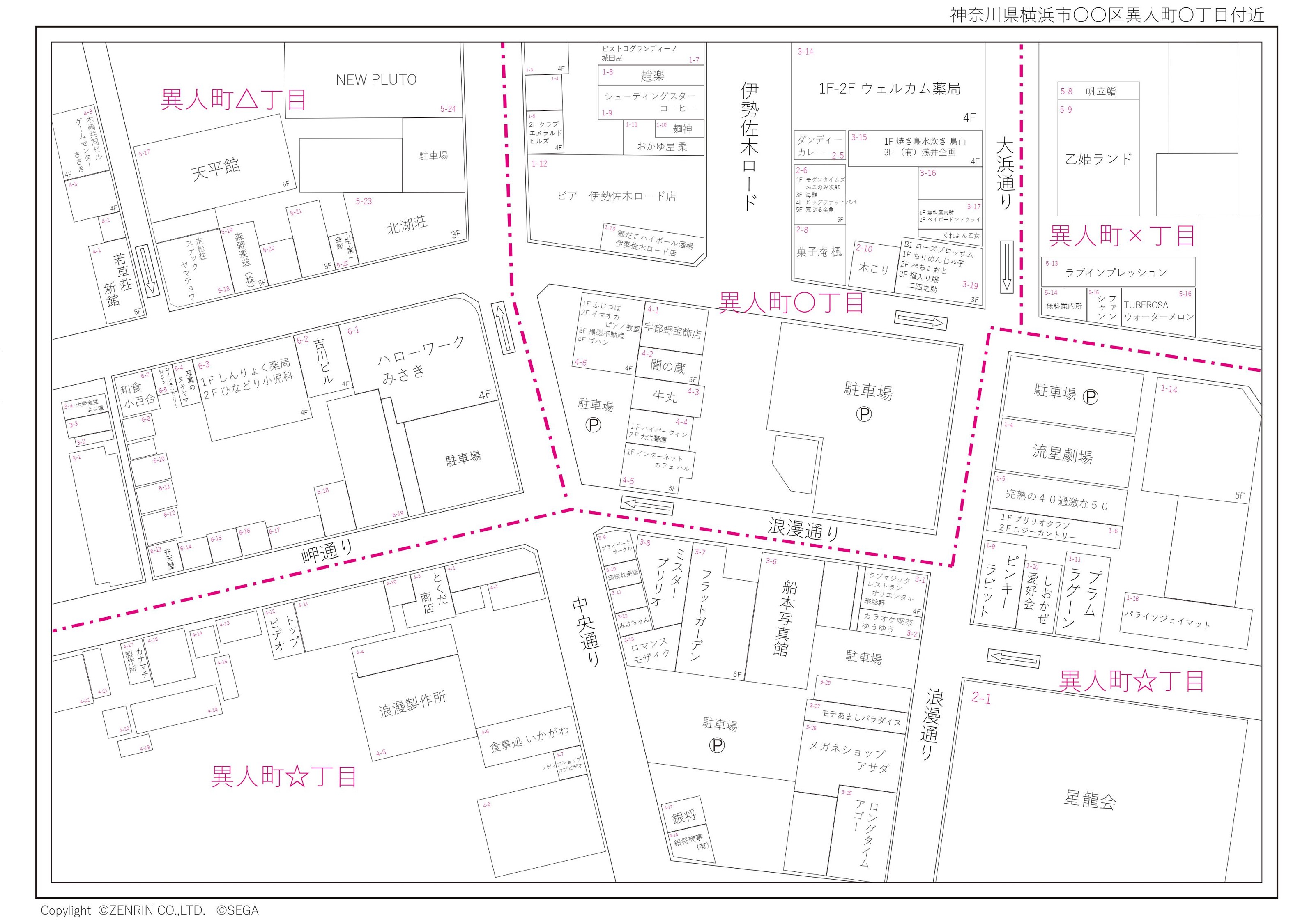 2020年から続いている『龍が如く』とのコラボ企画。最初は「横浜・伊勢佐木異人町の住宅地図っぽいものを作ってみた」でした。(『龍が如く7 光と闇の行方』)