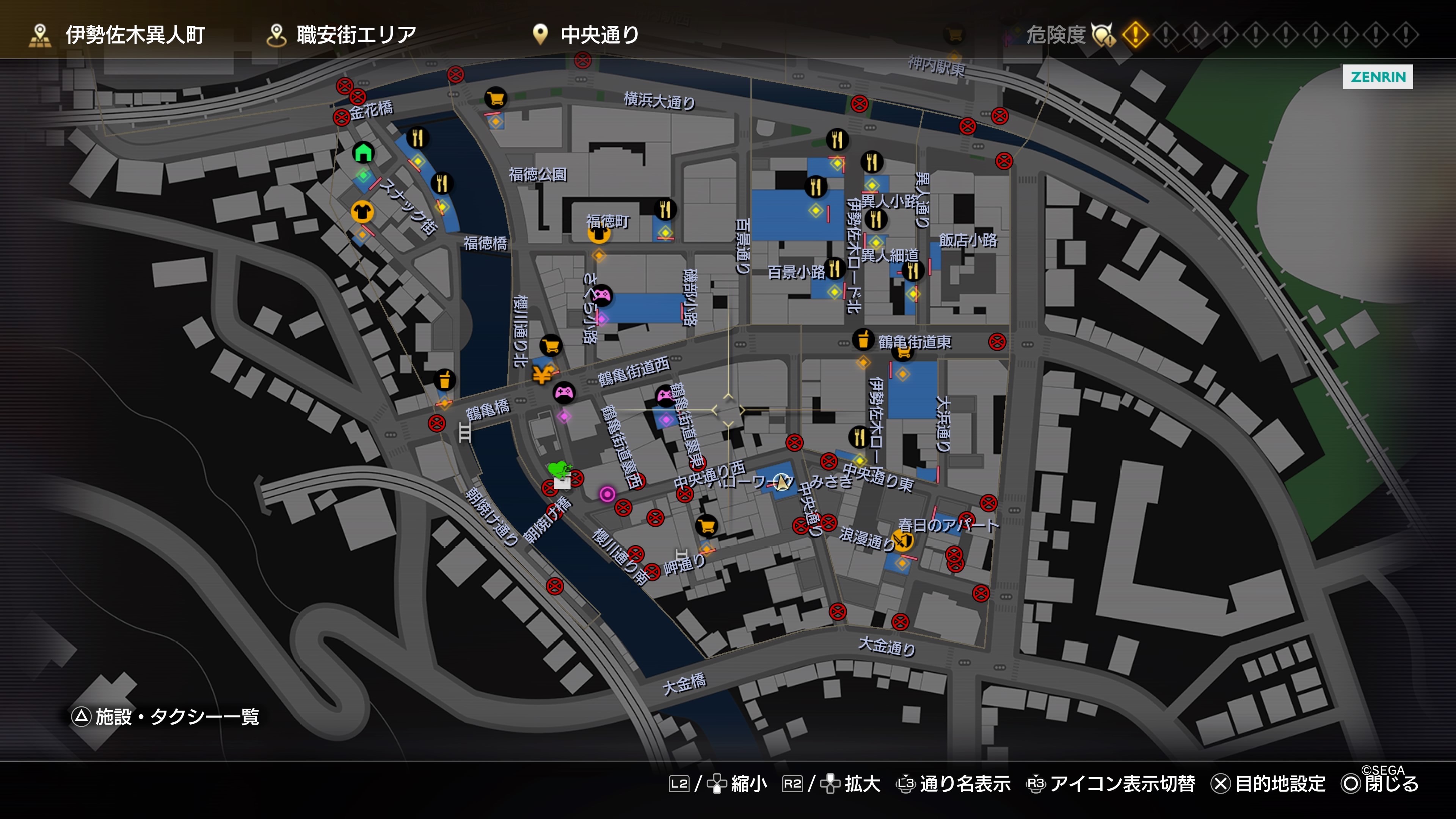 さらに、2024年発売『龍が如く8』、2025年発売『龍が如く8外伝 Pirates in Hawaii』では、SNSの世界を飛び出し、ゲーム内マップのデザインを当社が制作しました。マップの右上には「ZENRIN」のロゴが…!