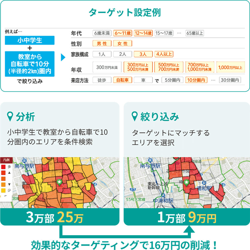 通学可能なエリアで対象年代を絞り込んだ層へアプローチできた。